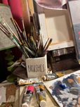 Cyaned Originals designs in situ. Lampshade; mug; pillows; throw. All with either Cyaned Originals logo, or Cyane pattern. In specific color combination for decor.